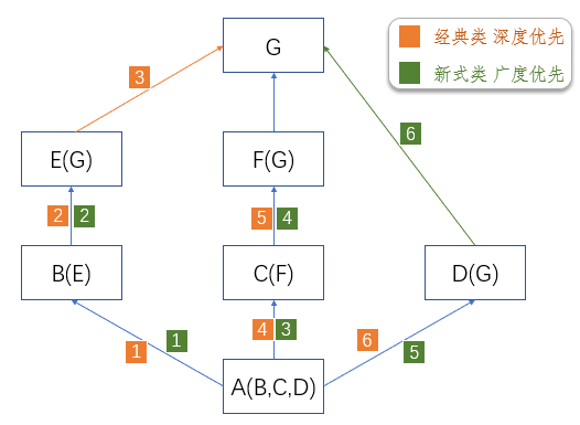 在新式类中, python为其内置了一个mro方法.