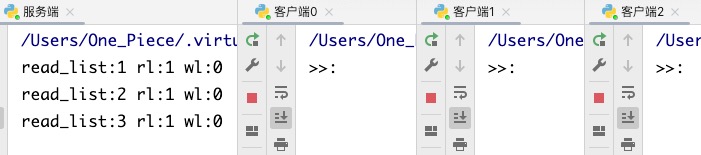 4> 启动客户端1,同理,rl列表的长度重新变为1.. 再启动客户端2,以此类推..