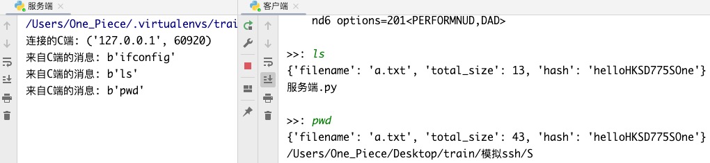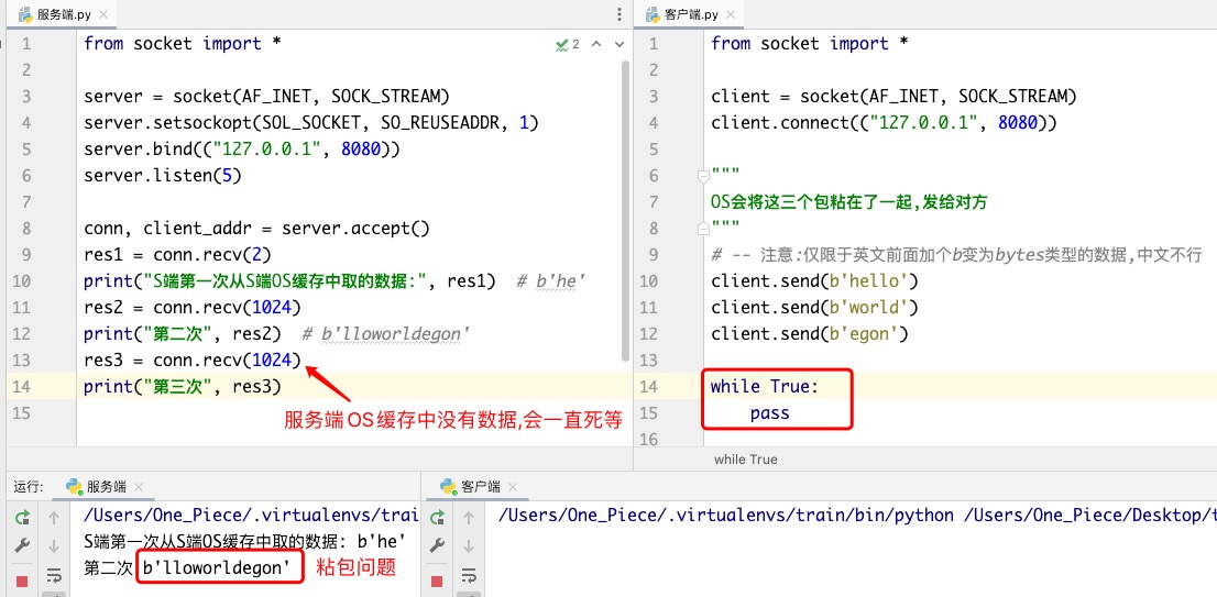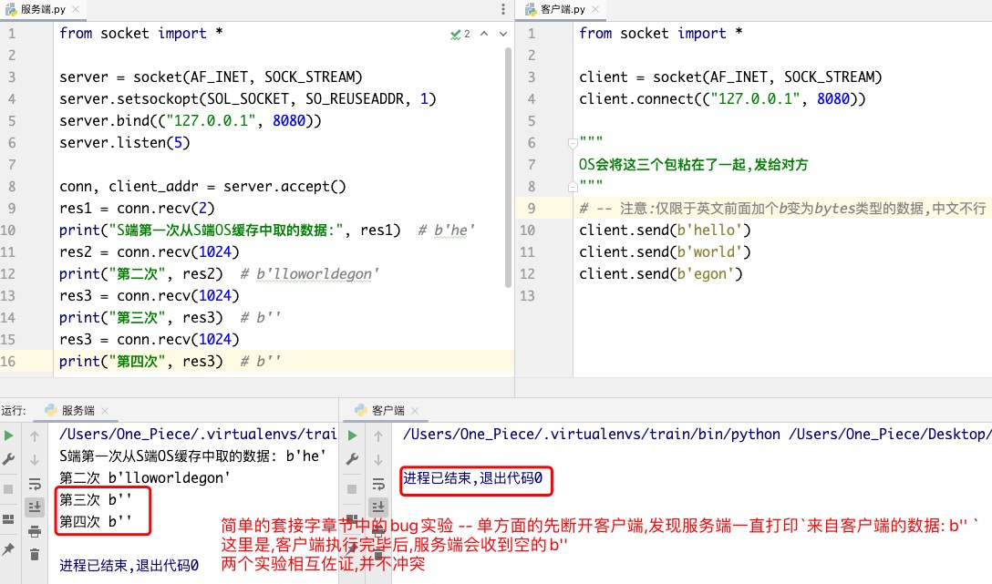 Ps: 注意! 客户端.py中相较于上方的截图中没有了 while True:pass 代码..